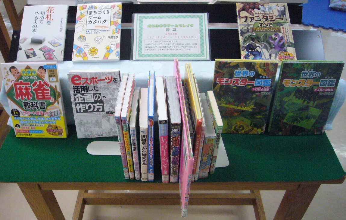 トランプや将棋のルールマニュアルをはじめ,eスポーツに関連する本や,ゲームで登場するキャラクターが絵本や小説となっている作品などをご用意しておりますので,束の間の休息にいかがでしょうか?
