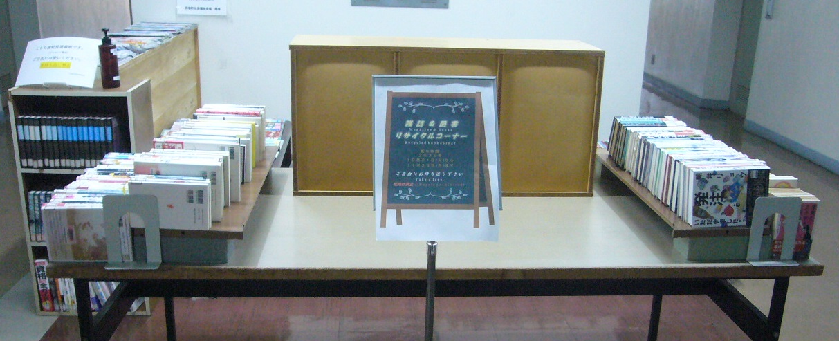 ・図書室から除かれた雑誌や,情報が古くなったり読まれなくなってしまった除籍図書を,2階の廊下にコーナーを設けて必要とされます町民の皆さんにお渡しします。