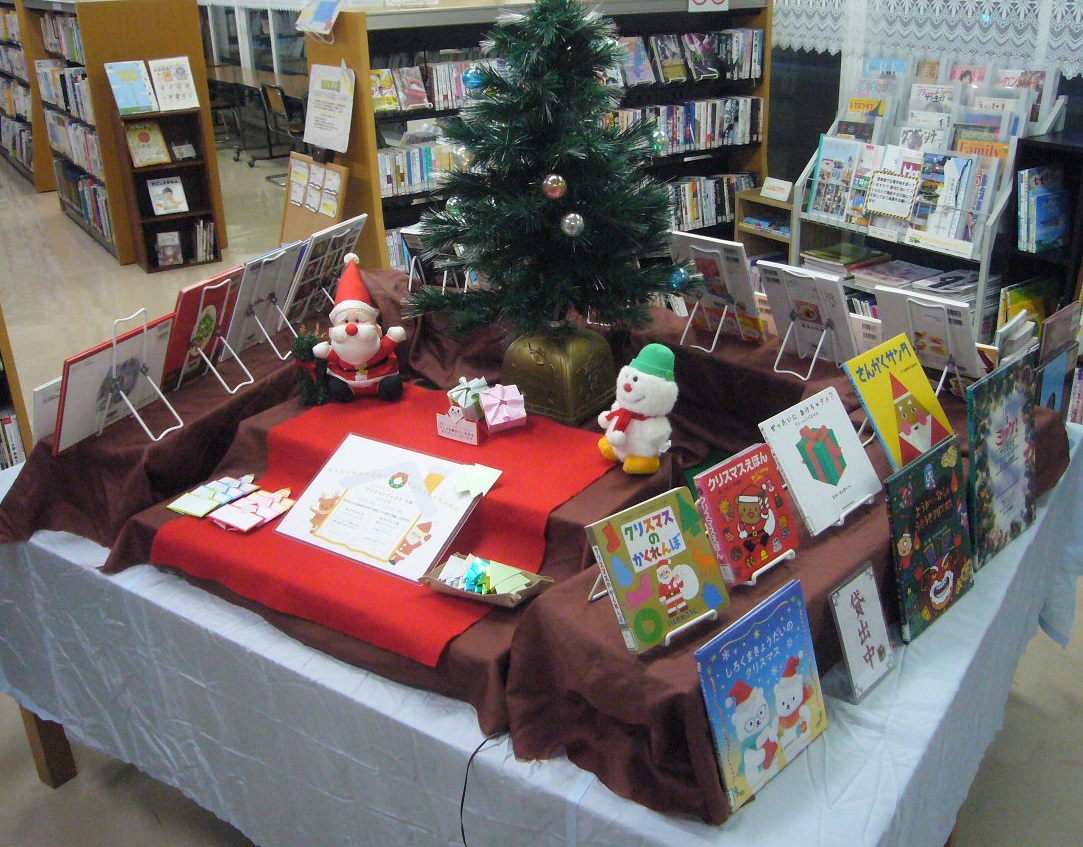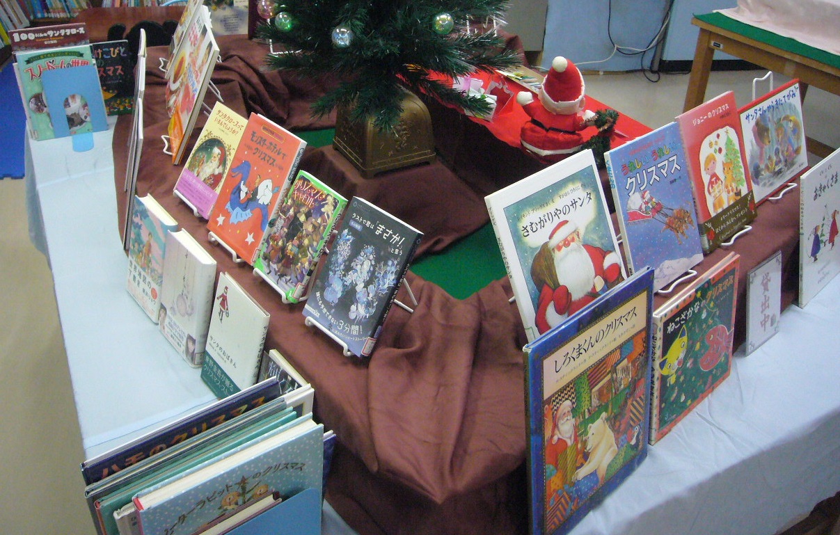 図書室では冬の特別展示として,サンタクロースやクリスマスに関連する絵本や読み物など50冊ほど並べております。