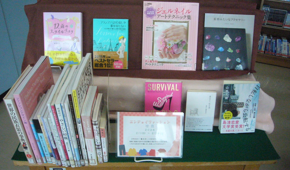 > 2月9日の「 服の日 」に合わせて,服飾に関連する本や,小説といった作品を集めて並べております。