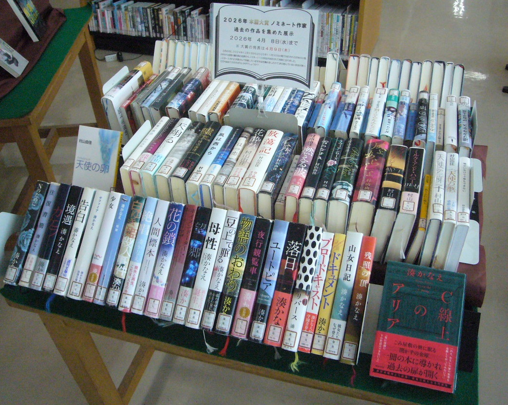 > 2月6日に発表となりました,『 2026年 本屋大賞 』ノミネートの10作品に選ばれました作家さんの過去の作品を図書室に所蔵されている本を集めて並べております。